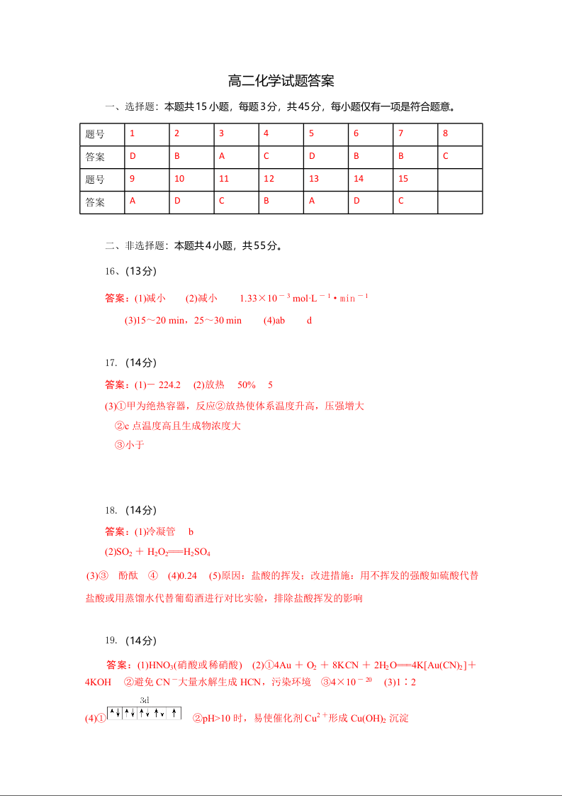 高二化学答案--湖北省部分高中协作体2025-2026学年高二上学期10月月考