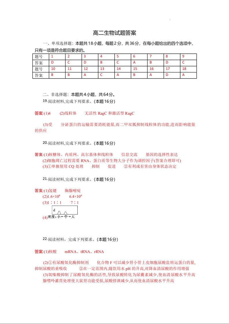 高二生物答案--湖北省部分高中协作体2025-2026学年高二上学期10月月考