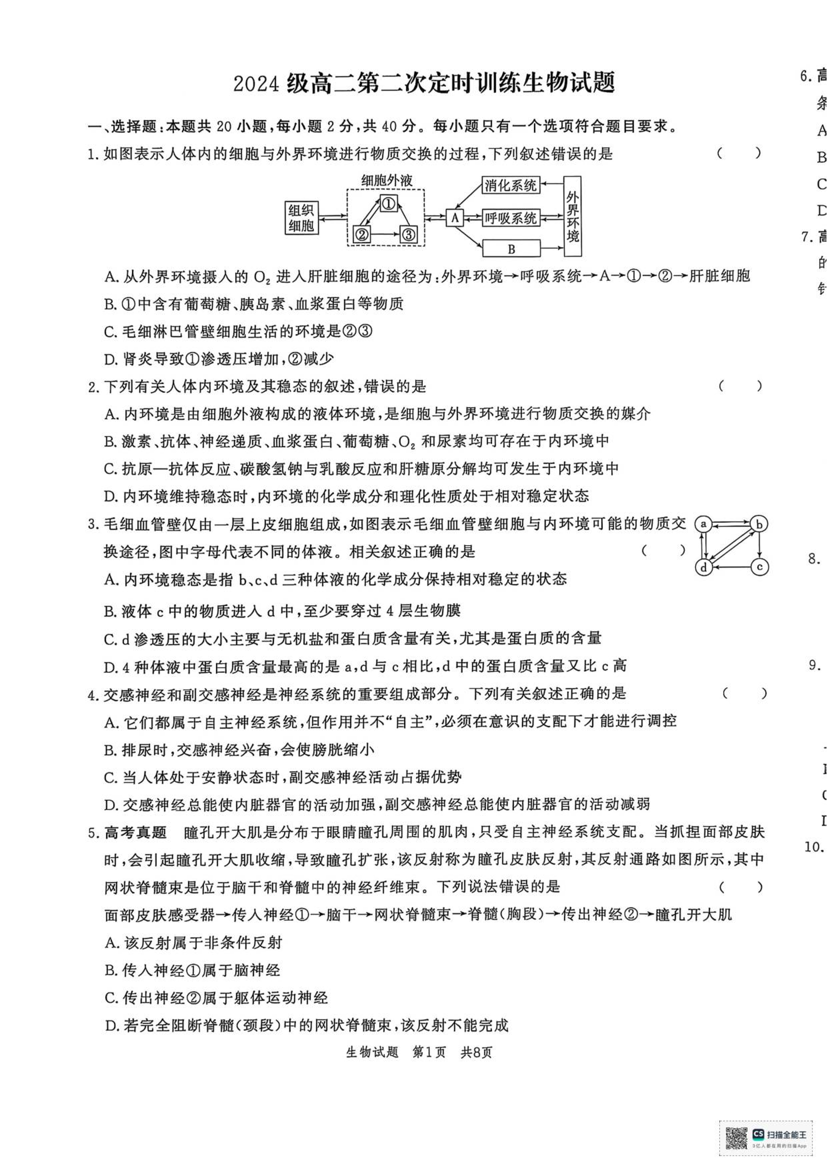 高二生物+答案--山东省菏泽市鄄城县第一中学2025-2026学年高二上学期10月月考