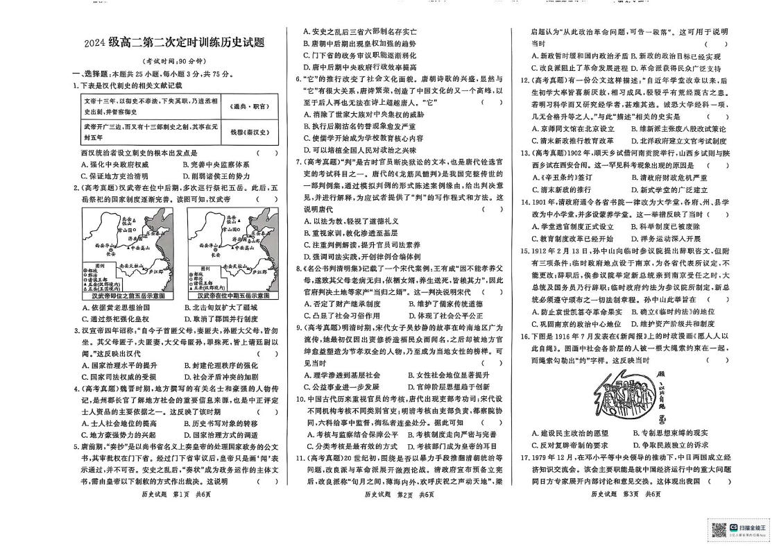 高二历史+答案--山东省菏泽市鄄城县第一中学2025-2026学年高二上学期10月月考