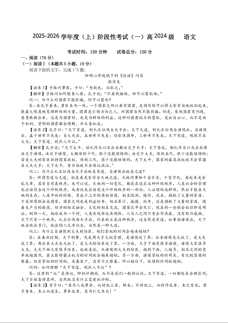 高二语文+答案--四川省成都市成华区某校2025-2026学年高二上学期阶段性考试(一)