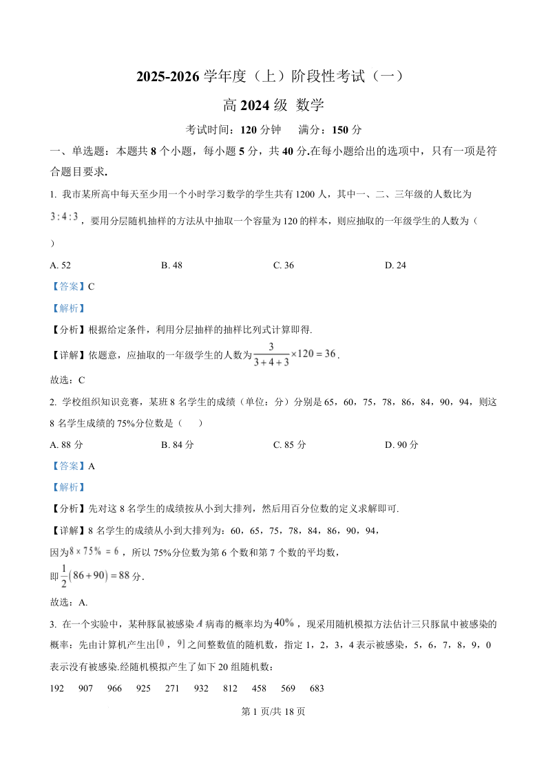 高二数学(解析版)--四川省成都市成华区某校2025-2026学年高二上学期阶段性考试(一)
