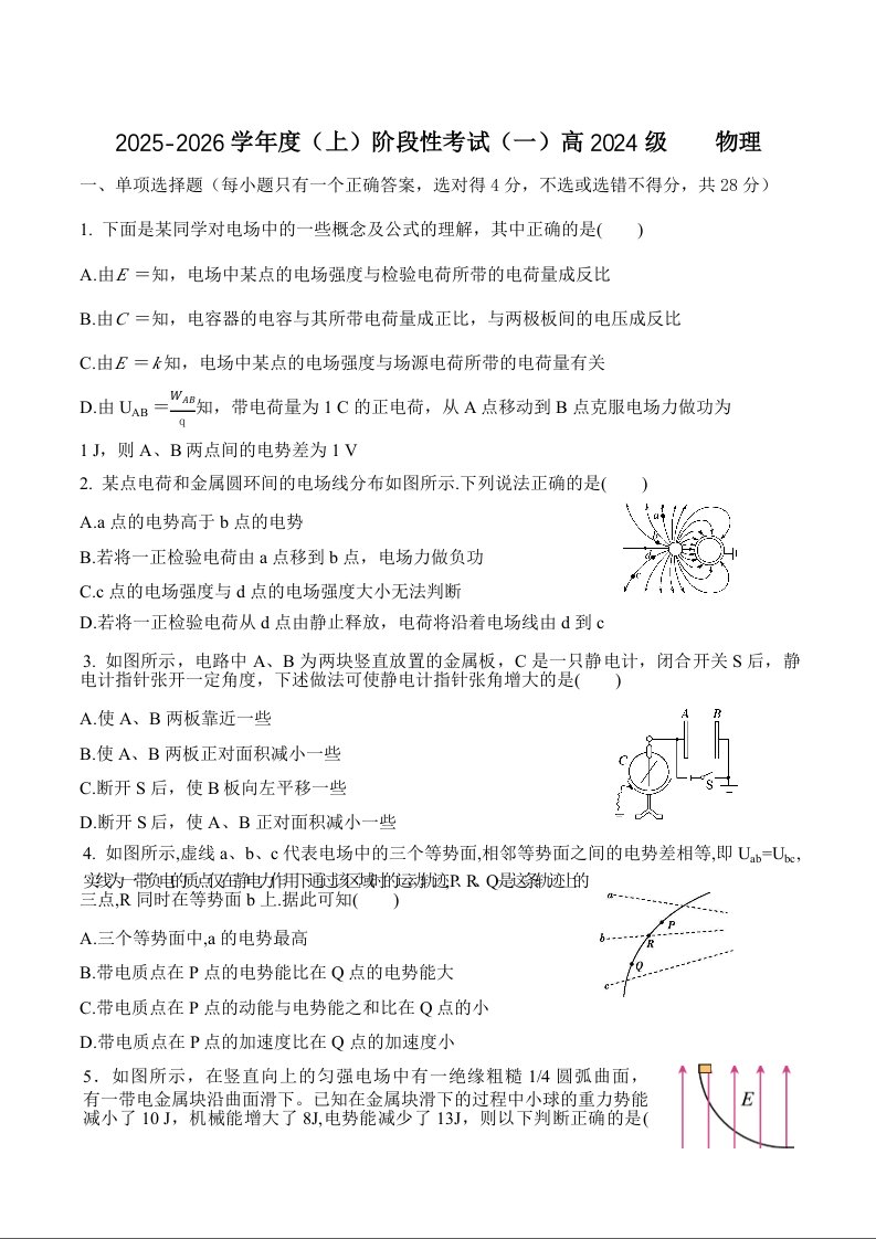 高二物理+答案--四川省成都市成华区某校2025-2026学年高二上学期阶段性考试(一)