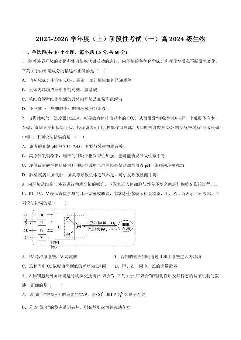 高二生物+答案--四川省成都市成华区某校2025-2026学年高二上学期阶段性考试(一)