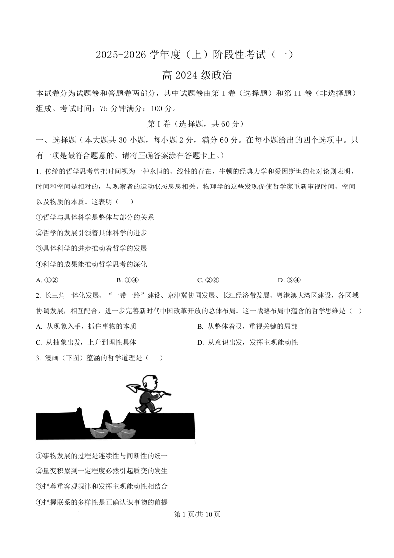 高二政治(原卷版)--四川省成都市成华区某校2025-2026学年高二上学期阶段性考试(一)