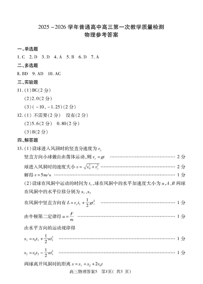 高三物理答案--河南省信阳市2026届高三第一次教学质量检测地理