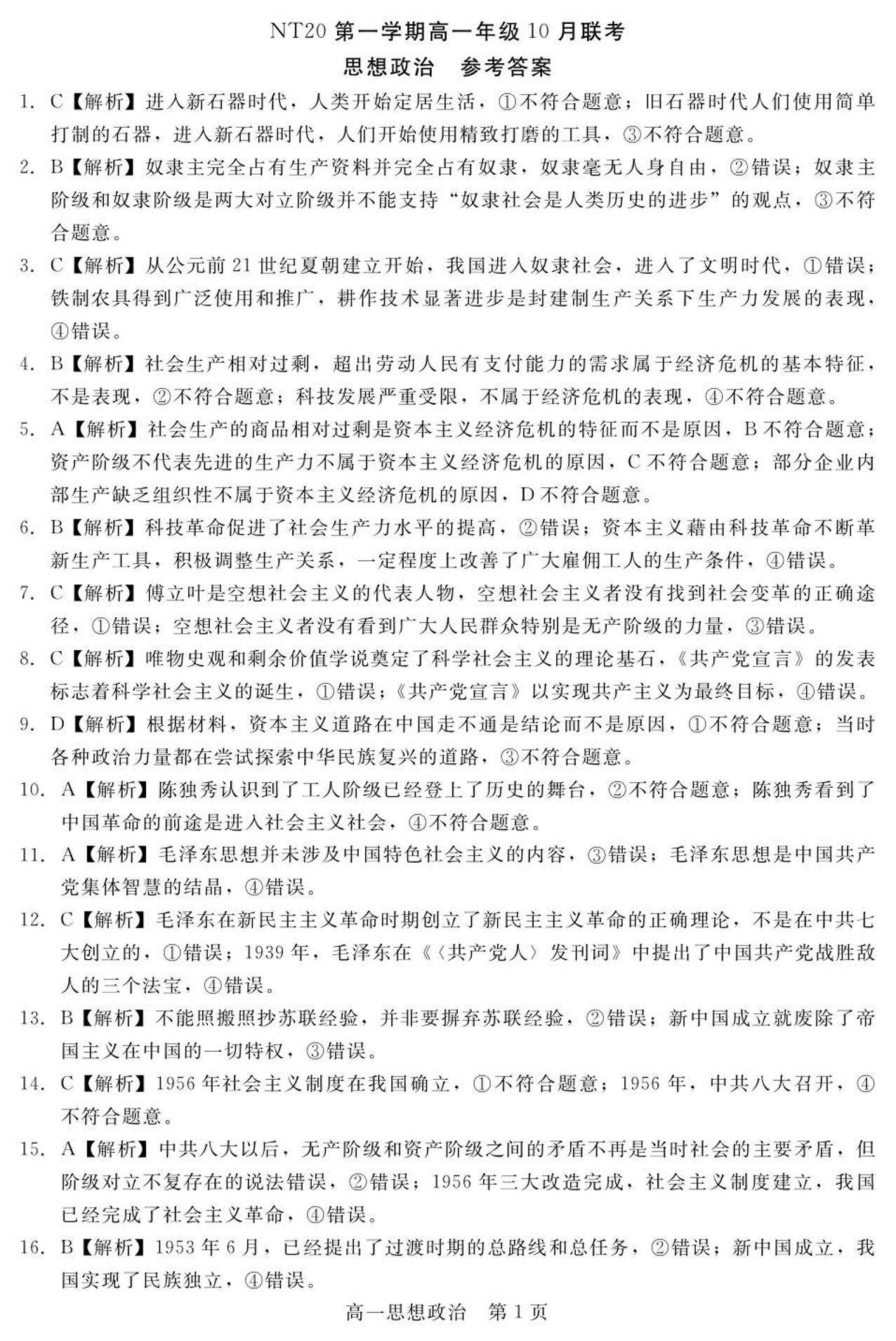 高三政治答案--河北省NT20名校联合体2025-2026学年高一上学期10月联考