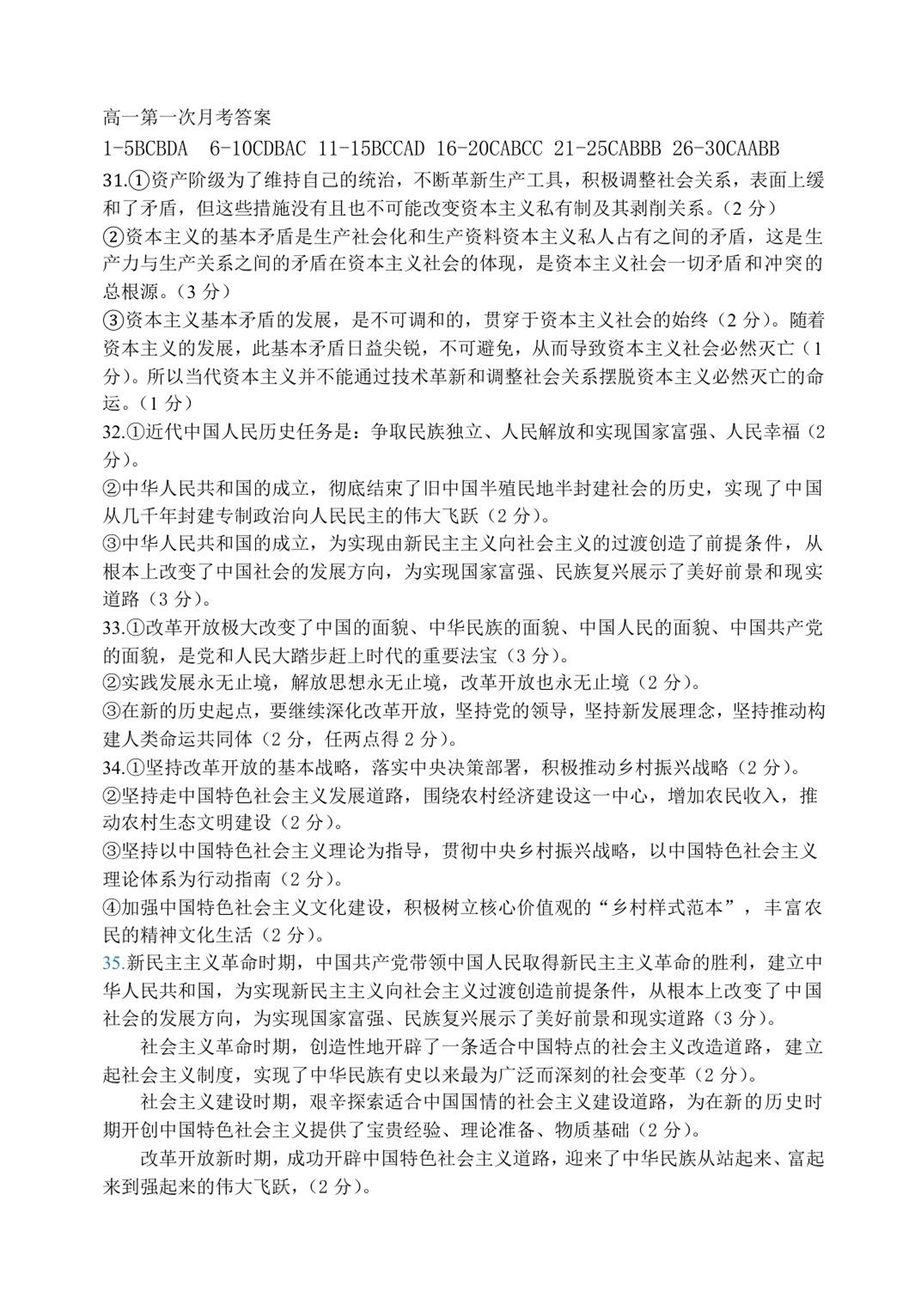 高一政治答案--山东省德州市夏津第一中学2025-2026学年高一上学期10月月考