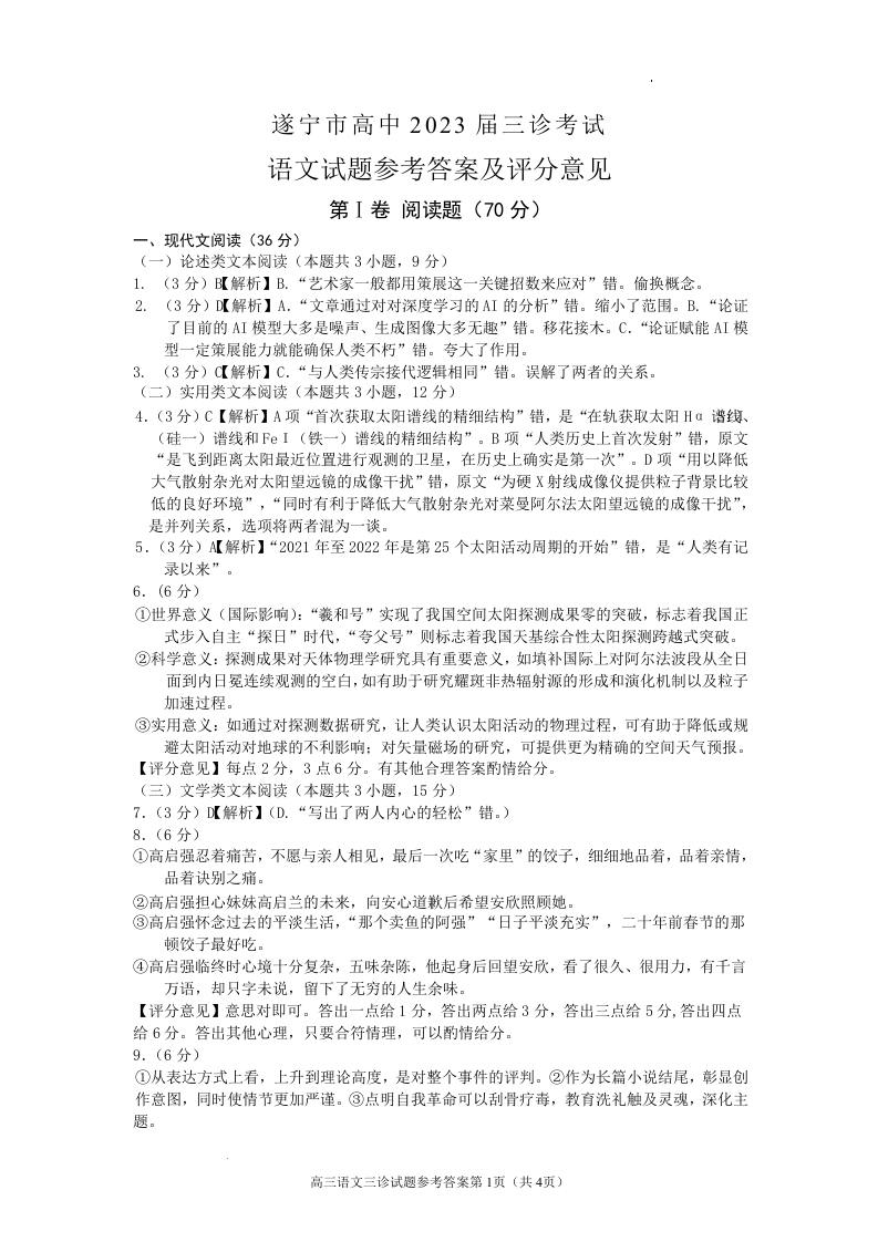 高三语文答案--四川省遂宁市2023届高三下学期三模