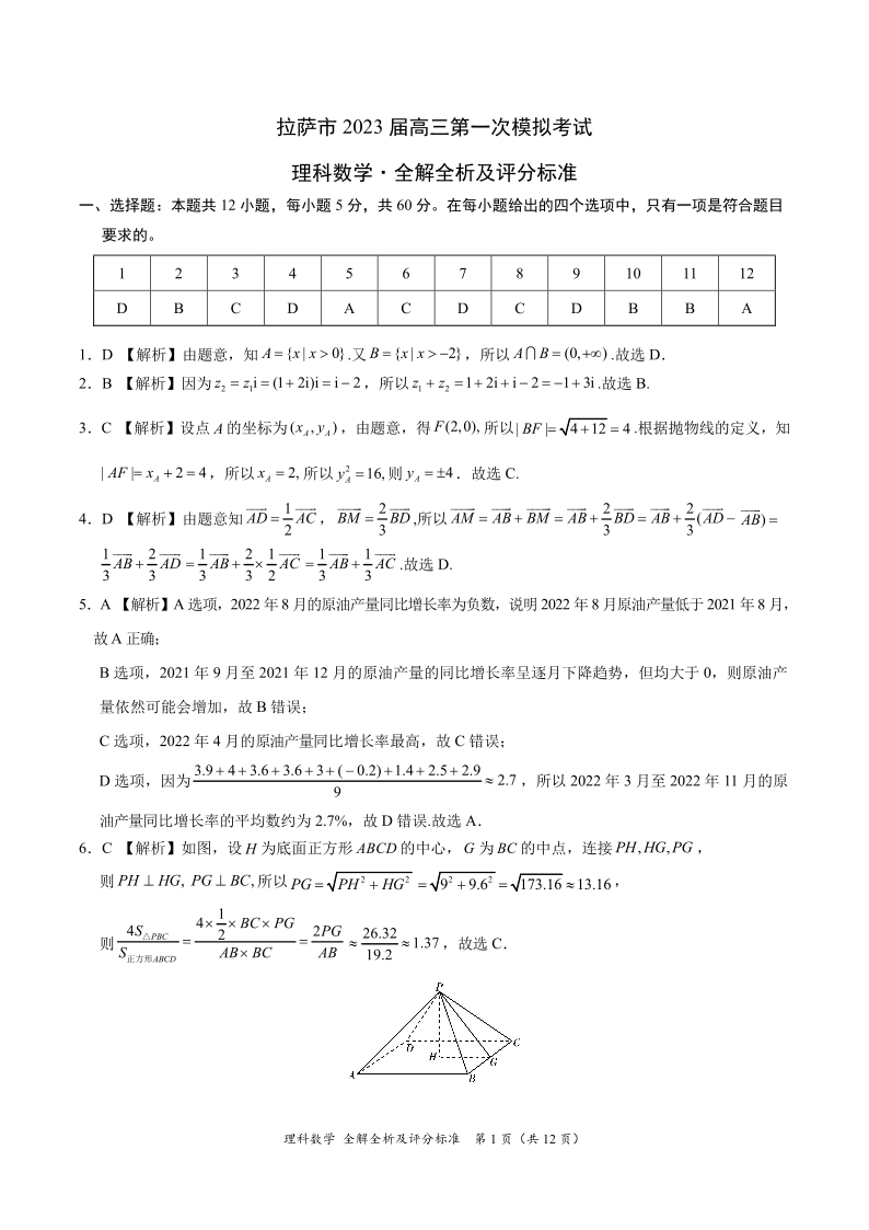 高三理数答案--西藏拉萨市2023届高三下学期第一次模拟考试(拉萨一模)