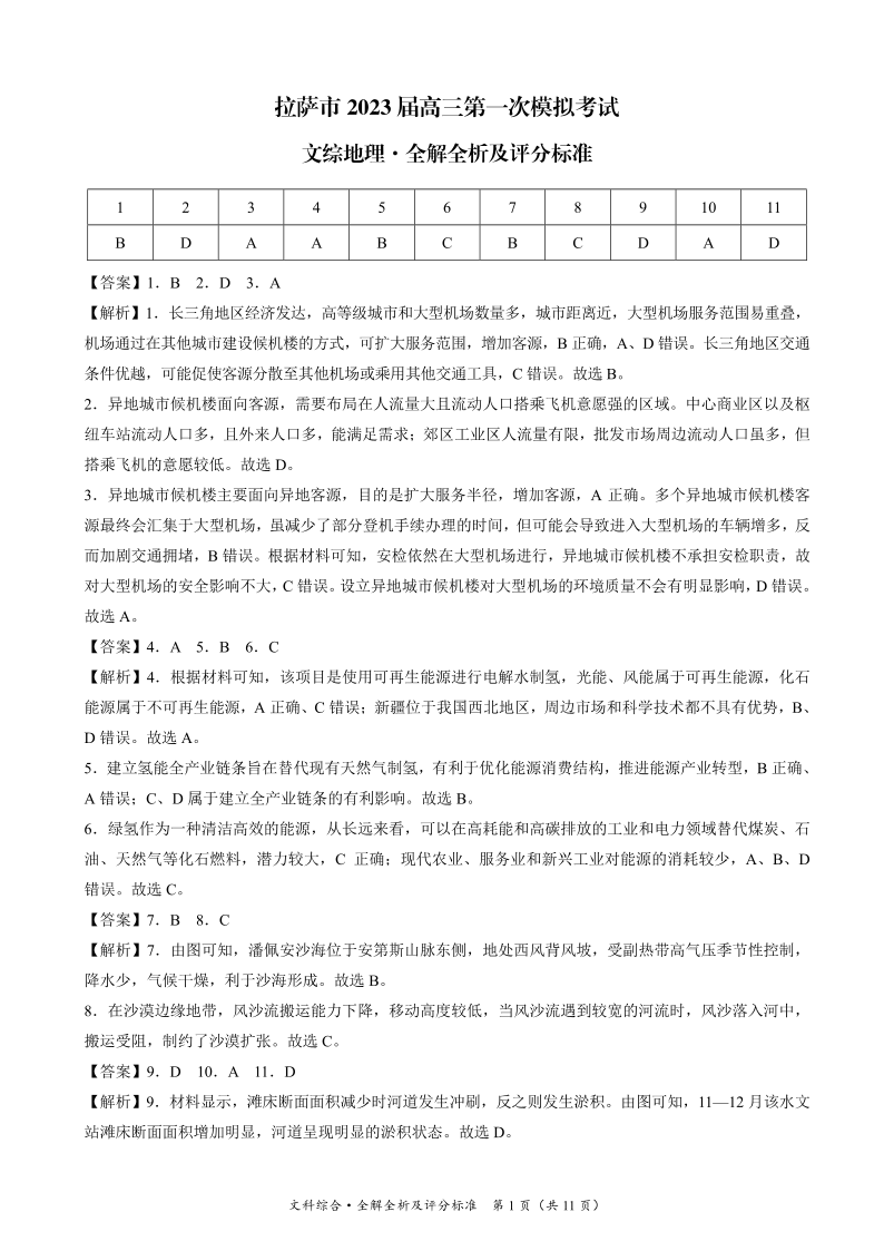 高三文综答案--西藏拉萨市2023届高三下学期第一次模拟考试(拉萨一模)
