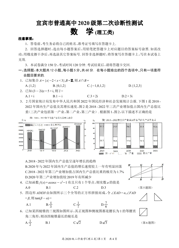 高三理数--四川省宜宾市2023届高三下学期(二诊)