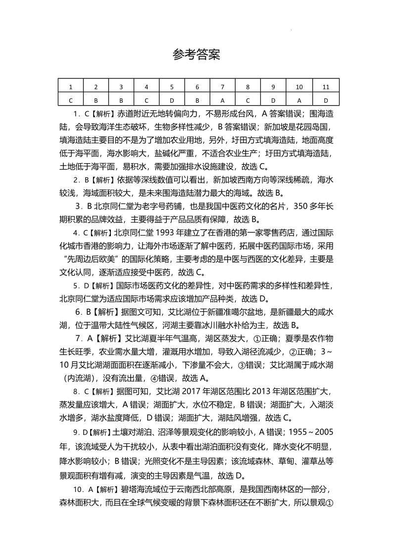 高三文综地理答案--四川省宜宾市2023届高三下学期(二诊)