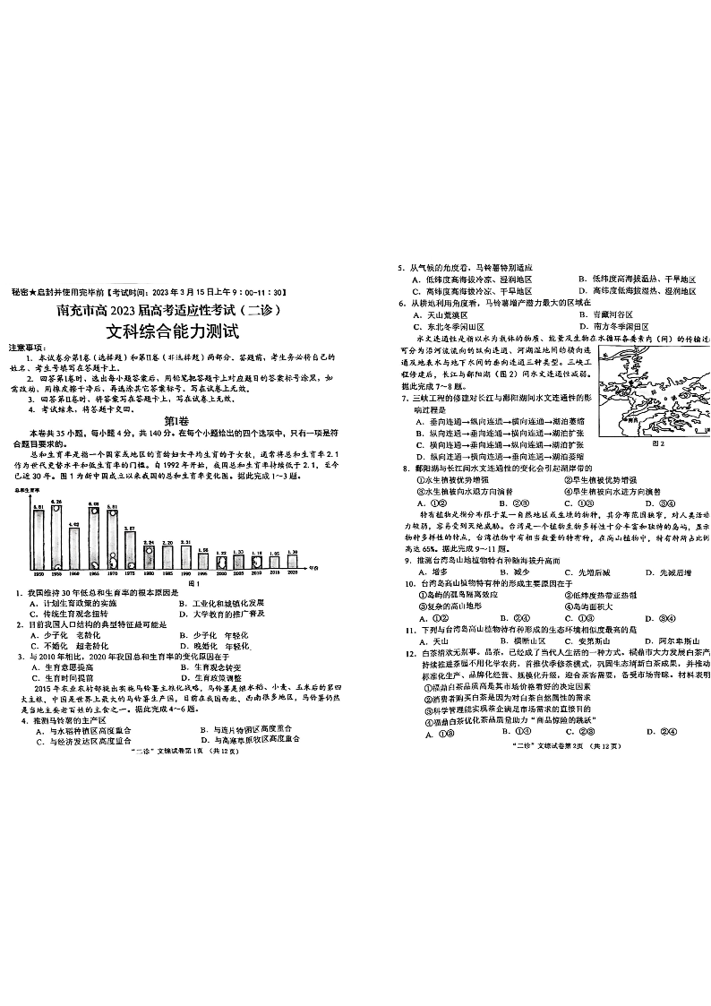 高三文综--四川省南充市2023届高三下学期高考适应性考试(南充二诊)