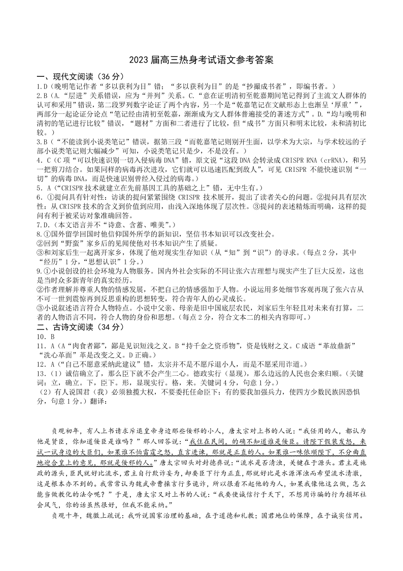 高三语文答案--四川省成都市第七中学2023届高三下学期热身考试