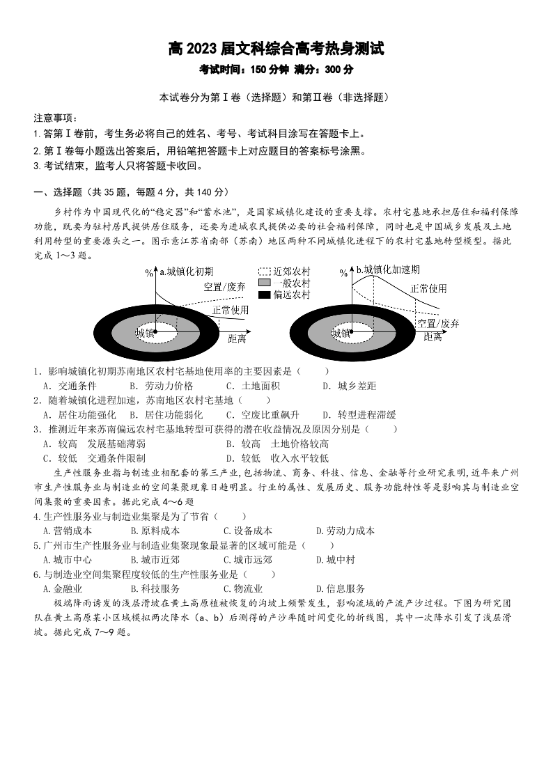 高三文综--四川省成都市第七中学2023届高三下学期热身考试