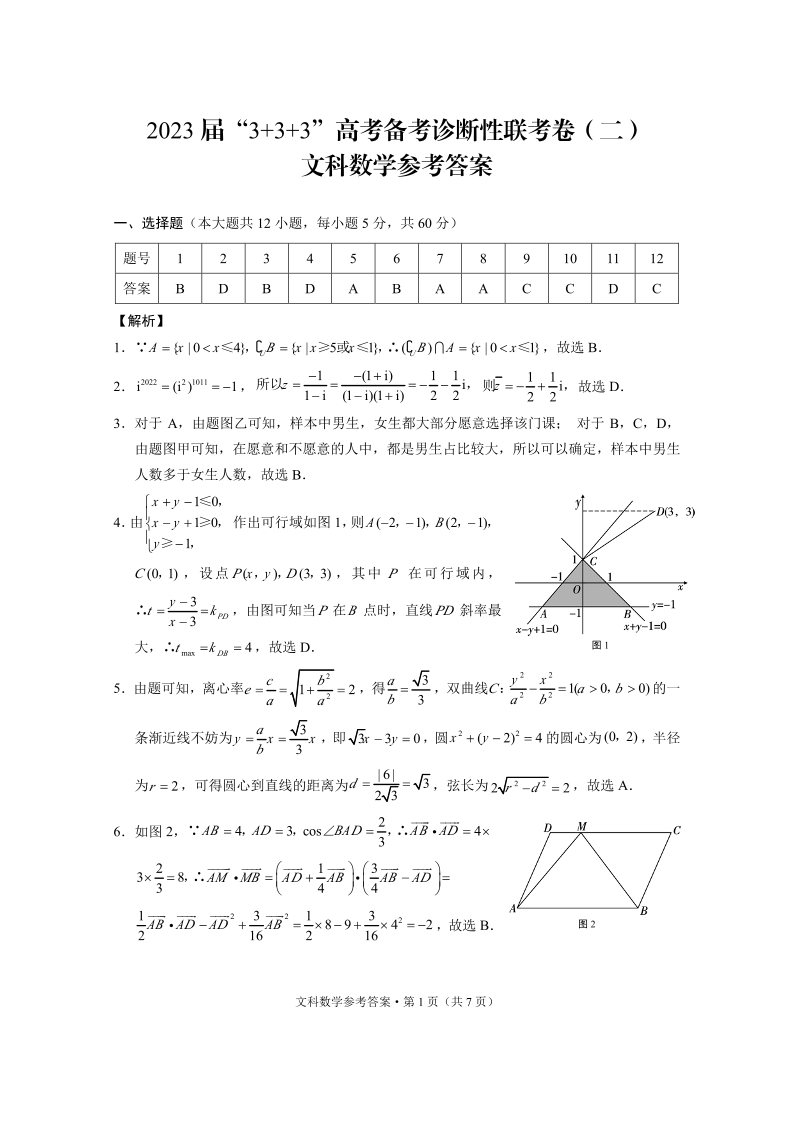 高三文数答案--贵州省2023届3+3+3高考备考诊断性联考(二)
