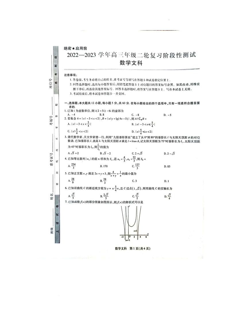 高三文数--广西壮族自治区2023届高三下学期第二次高考模拟