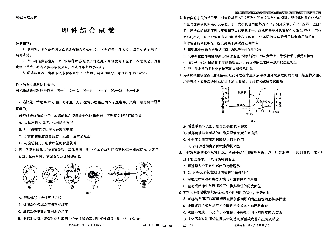 高三理综--云南师范大学附属中学2022-2023学年高三第十次高考适应性考试