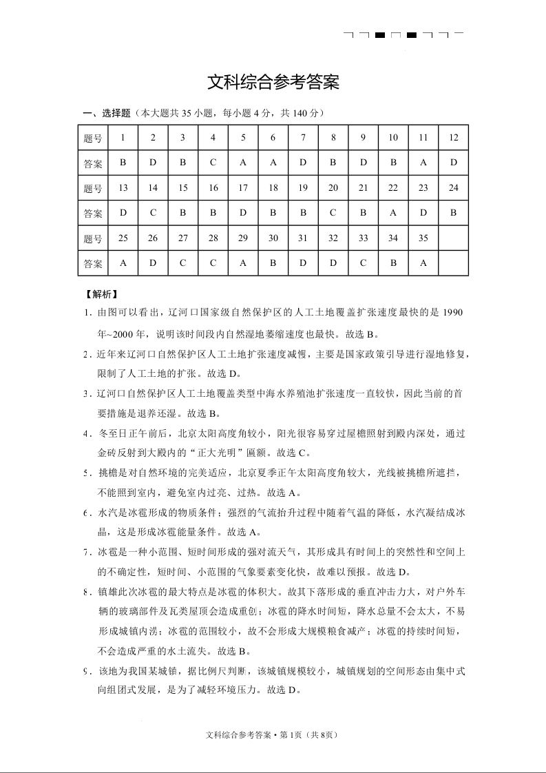 高三文综答案--云南师范大学附属中学2022-2023学年高三第十次高考适应性考试