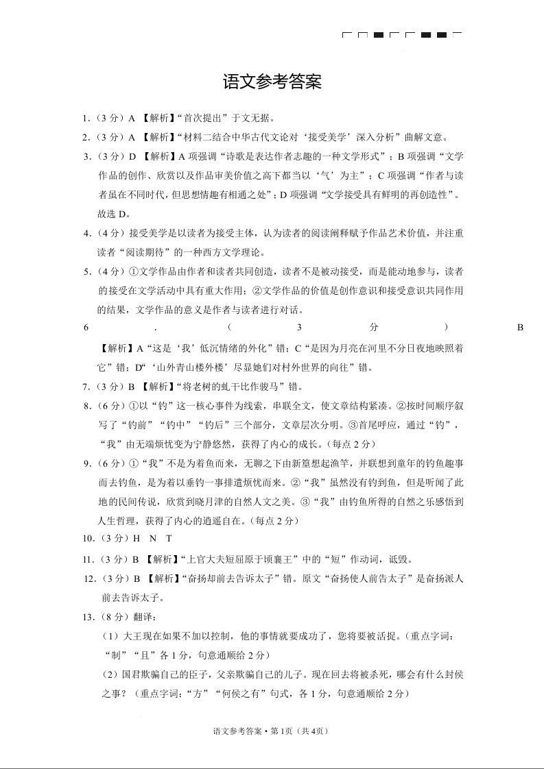高三语文答案--云南师范大学附属中学2023届高三第九次高考适应性月考(云南版)