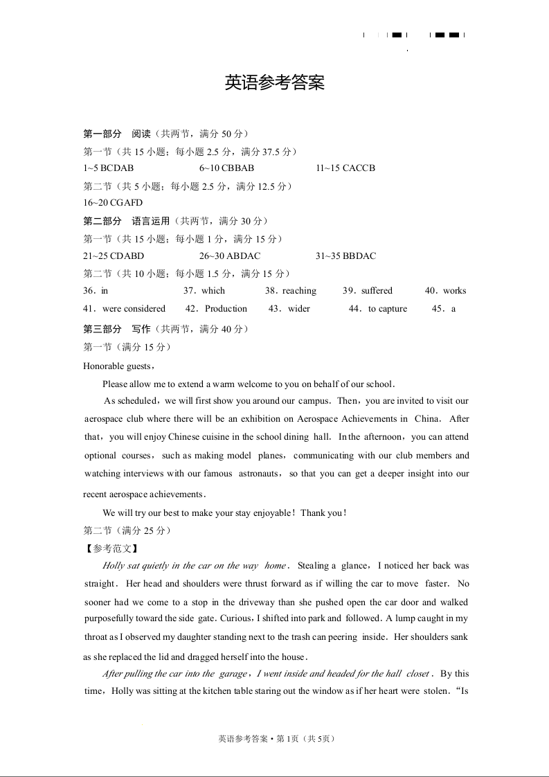 高三英语答案--云南师范大学附属中学2023届高三第九次高考适应性月考(云南版)