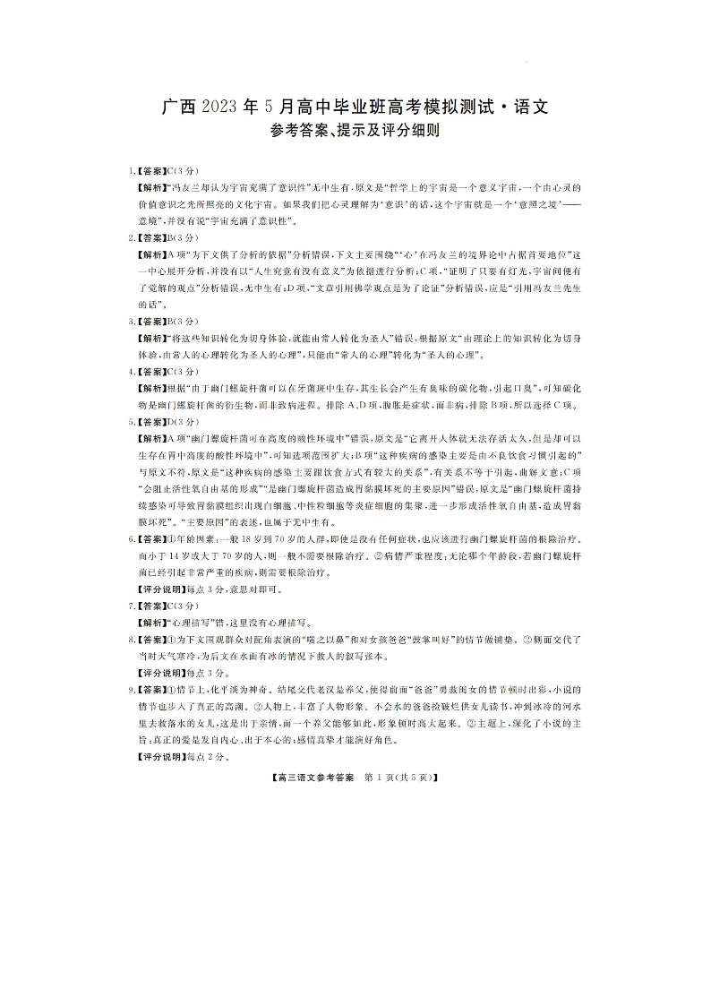 高三语文答案--广西2023年5月高中毕业班高考模拟测试(三模)
