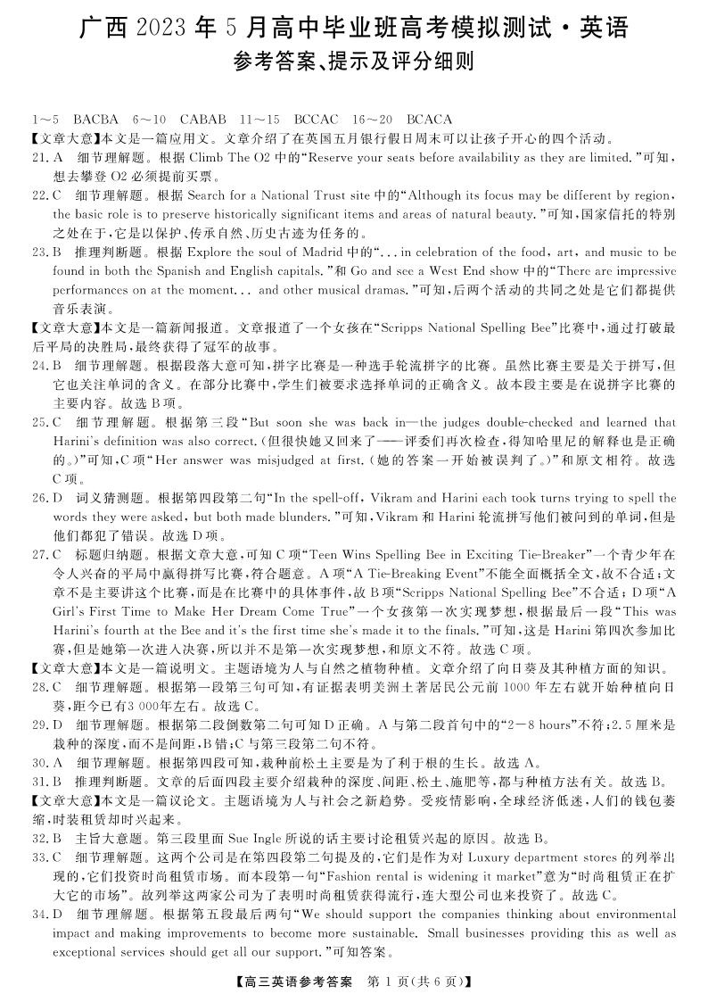 高三英语答案--广西2023年5月高中毕业班高考模拟测试(三模)