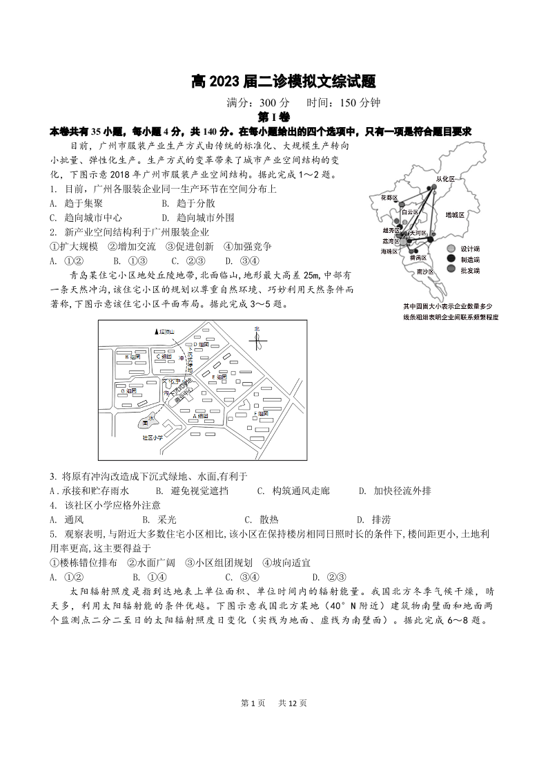 高三文综--四川省成都市第七中学2023届高三下学期二诊模拟考试