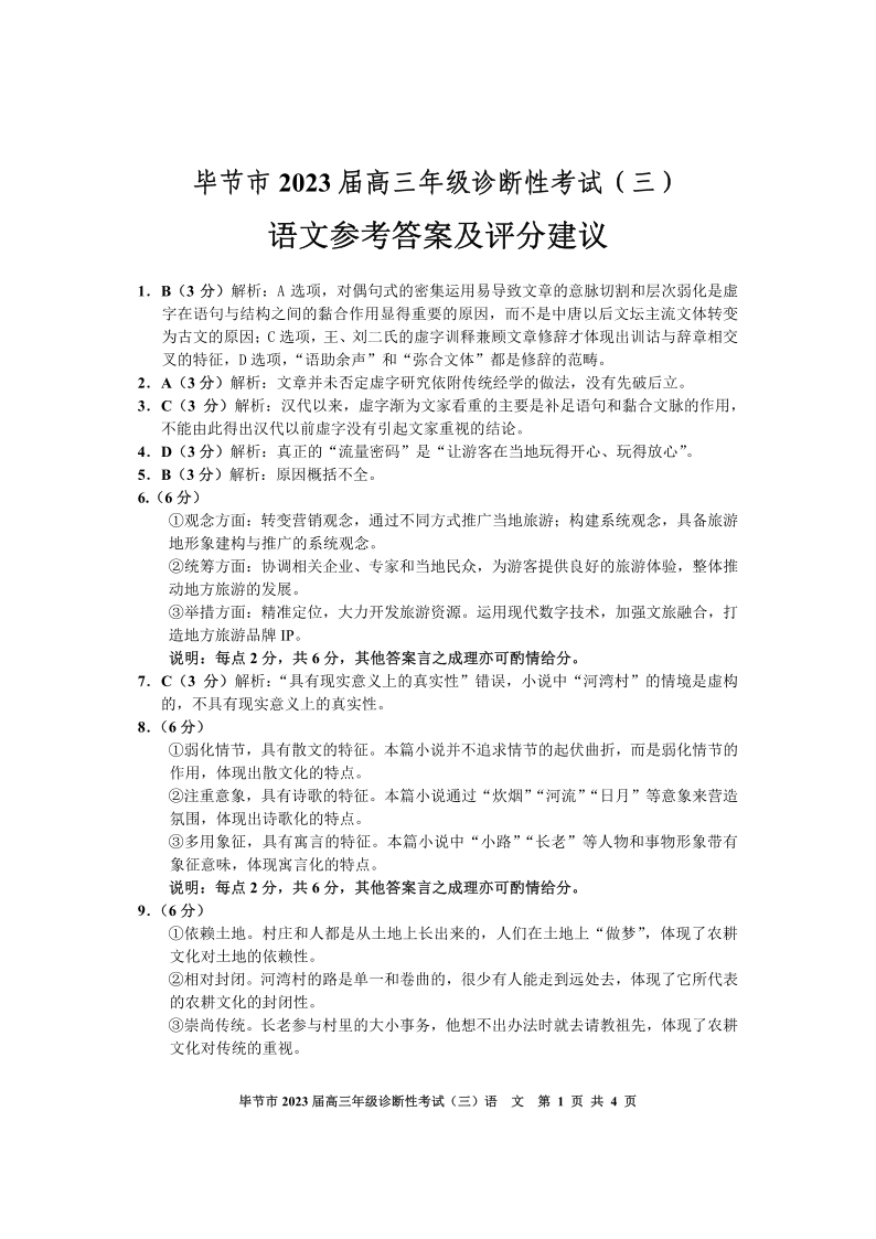 高三语文答案--贵州省毕节市2023届高三诊断性考试(三)(毕节三诊)