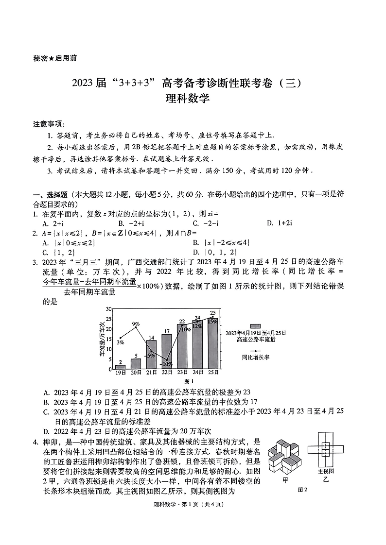 高三理数--贵州省贵阳市2023届高三3+3+3高考备考诊断性联考(三)