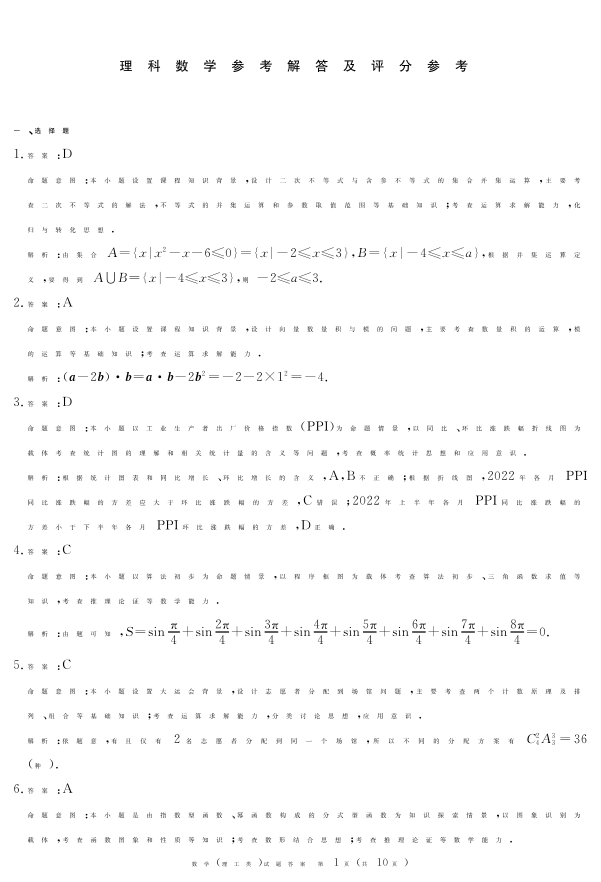 高三理数答案--四川省九市2023届高三三模