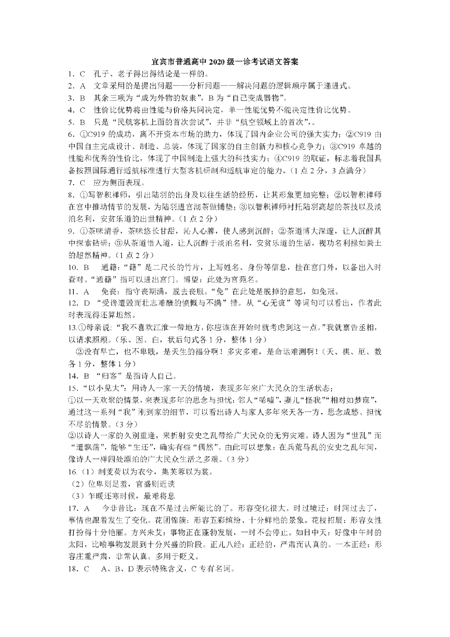 高三语文答案--四川省宜宾市2023届高三上学期第一次诊断测试
