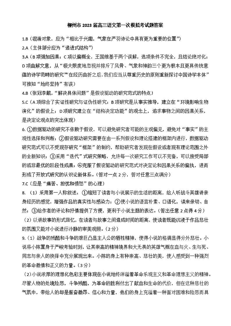 高三语文答案--广西壮族自治区柳州市2023届高三毕业班11月模拟统考(一模)