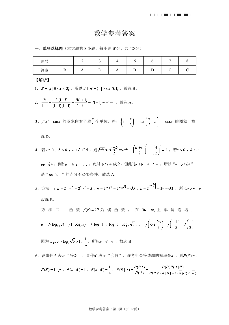 高三数学答案--云南省云师大附中2023届高三考适应性月考卷(一)