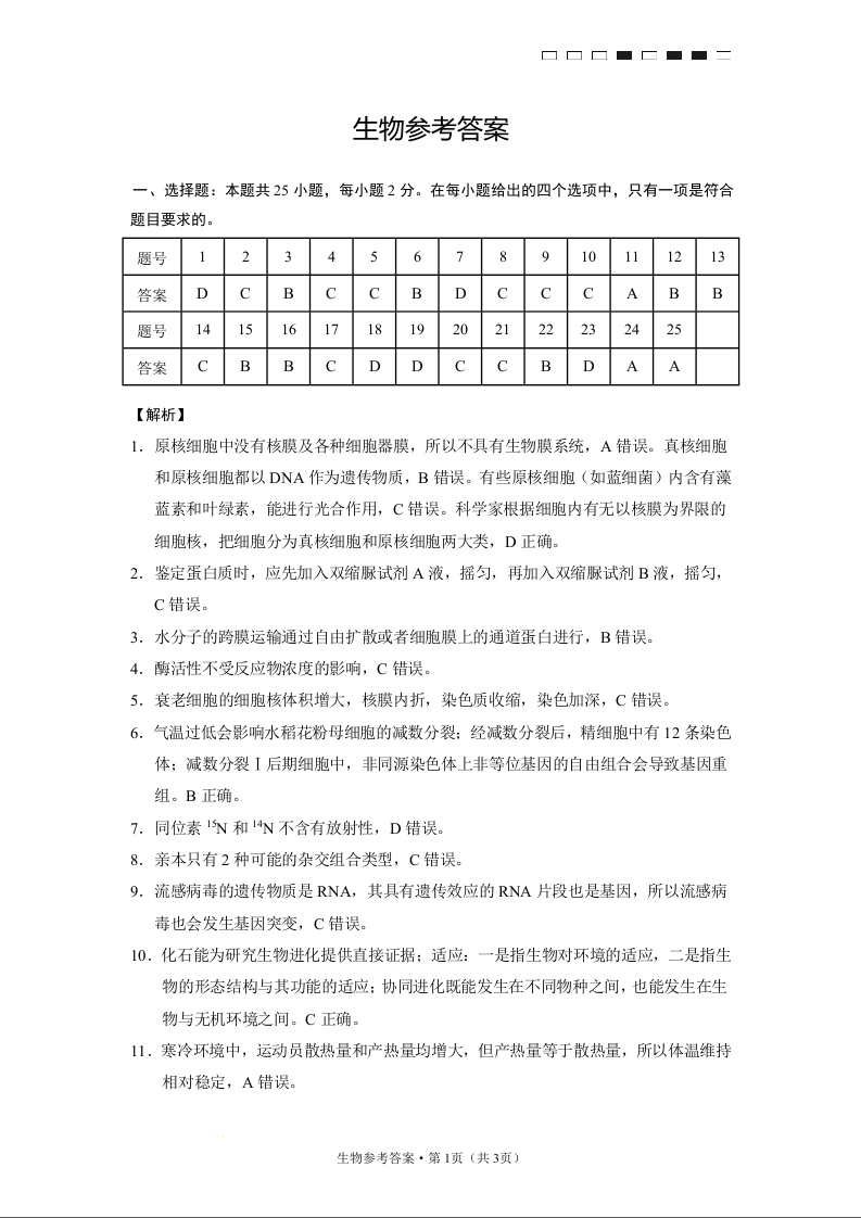 高三生物答案--云南省云师大附中2023届高三考适应性月考卷(一)
