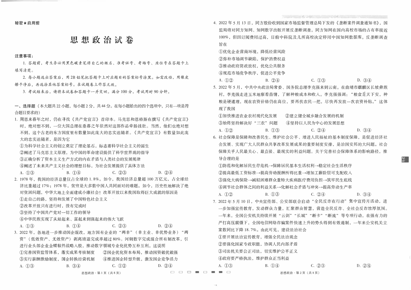 高三政治--云南省云师大附中2023届高三考适应性月考卷(一)