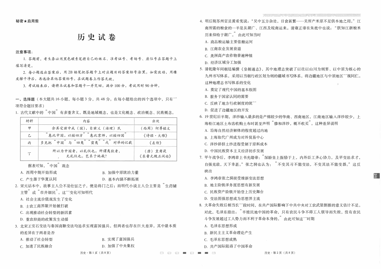 高三历史--云南省云师大附中2023届高三考适应性月考卷(一)