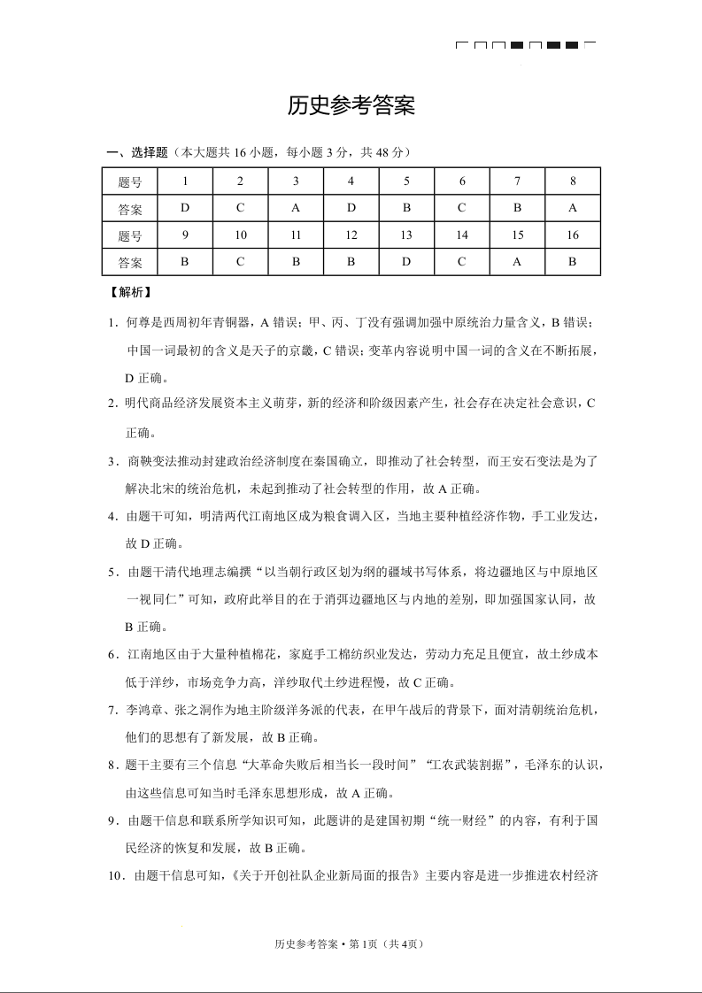 高三历史答案--云南省云师大附中2023届高三考适应性月考卷(一)