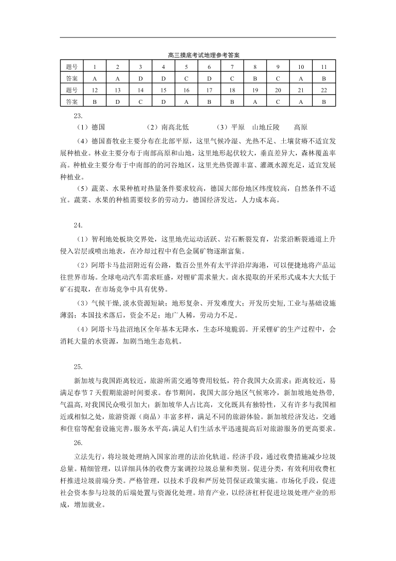 高三地理答案--广西柳州市新2023届高三摸底考试