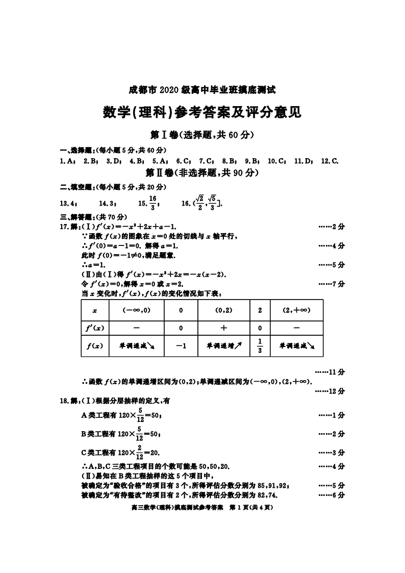 高三理科数学+答案--四川省成都市2023届高三摸底测试(零诊)