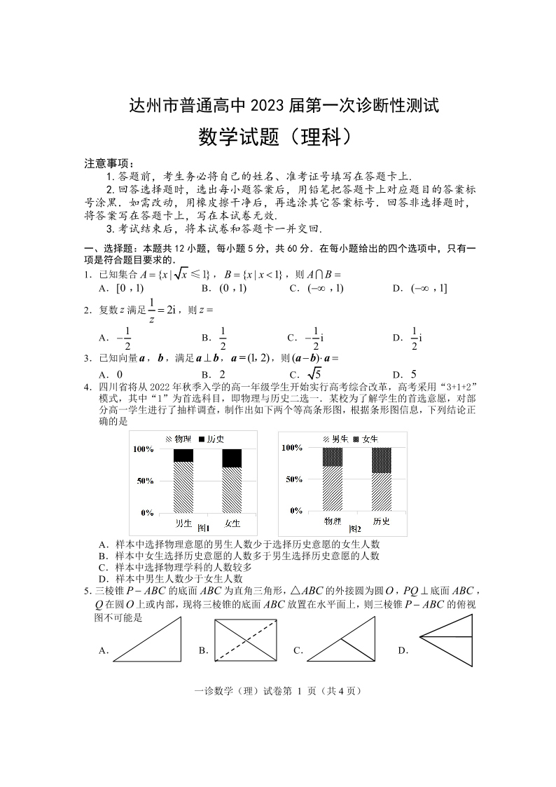 高三理数--四川省达州市普通高中2023届高三第一次诊断性测试