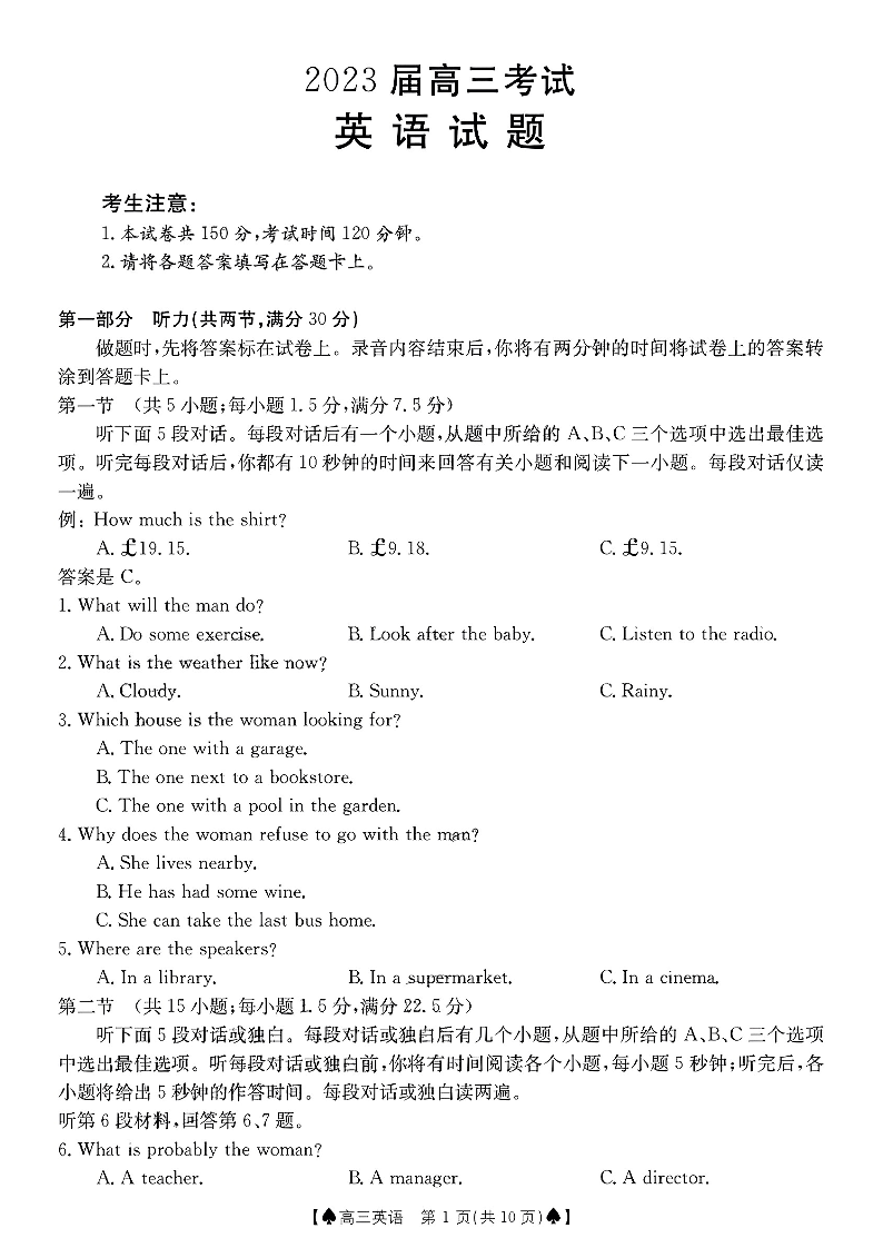 高三英语+答案--四川省部分学校2023届高三上学期12月大联考