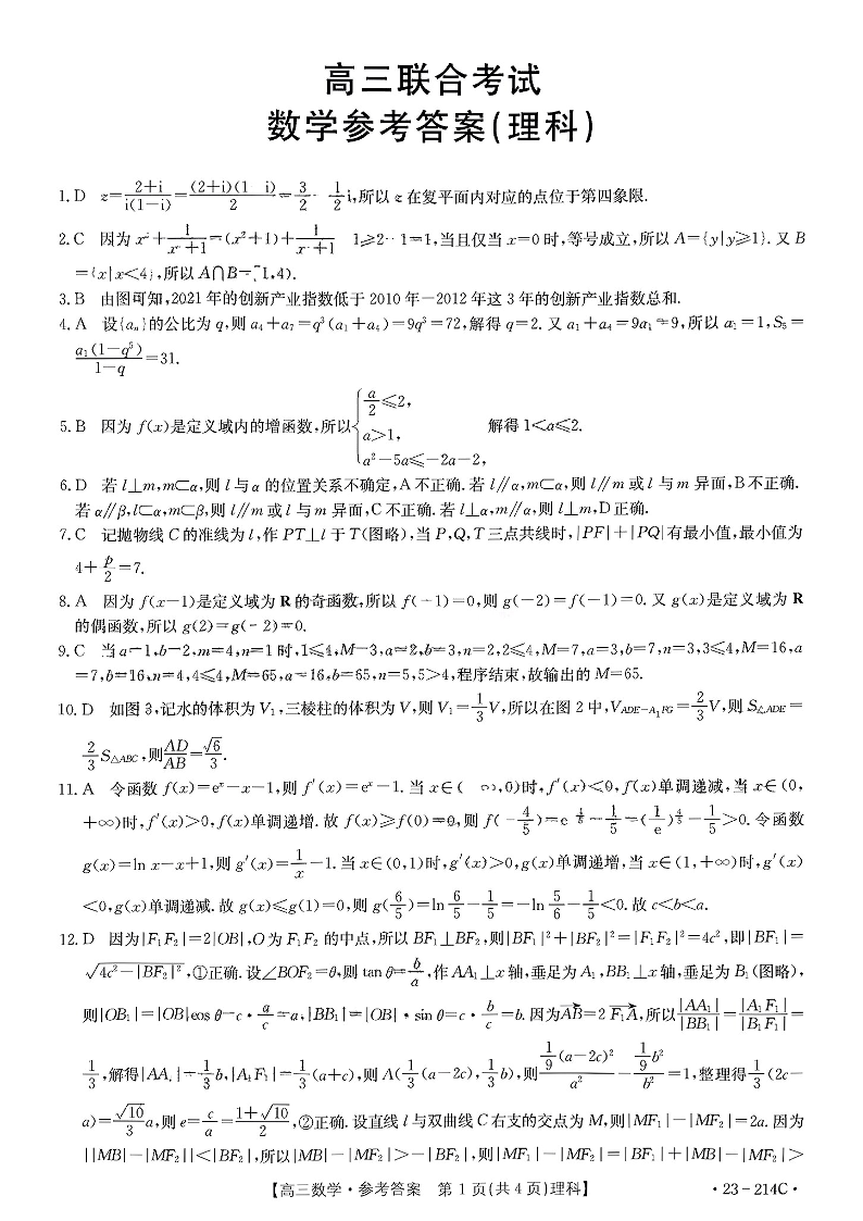 高三理数答案--贵州省毕节市部分学校2023届高三12月联合考试