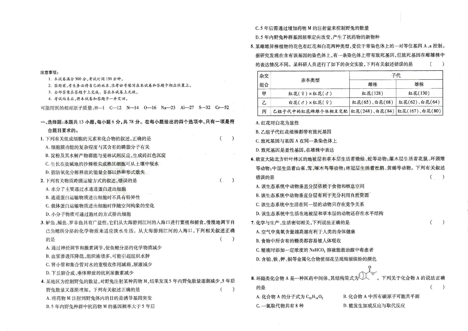 高三理综--广西壮族自治区南宁市第二中学2023届高三第一次综合质检(一模)