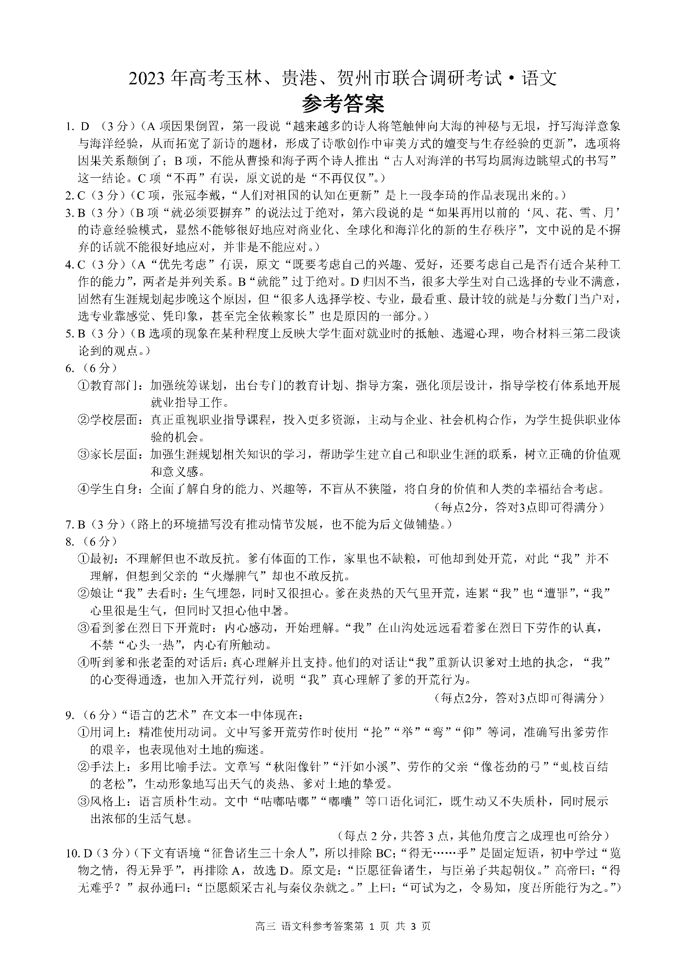 高三语文答案--广西桂林、崇左市2023年高考联合一模调研考试