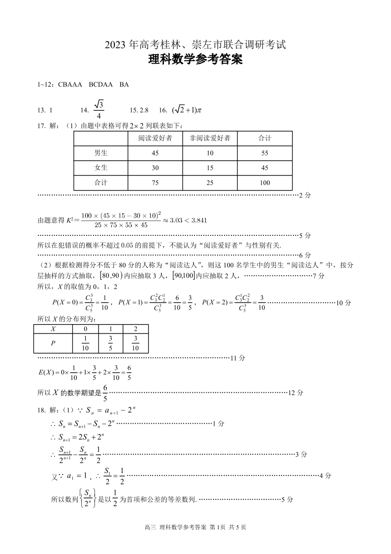 高三理数答案--广西桂林、崇左市2023年高考联合一模调研考试