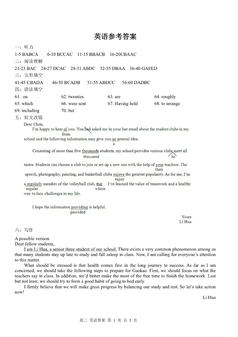 高三英语答案--广西桂林、崇左市2023年高考联合一模调研考试