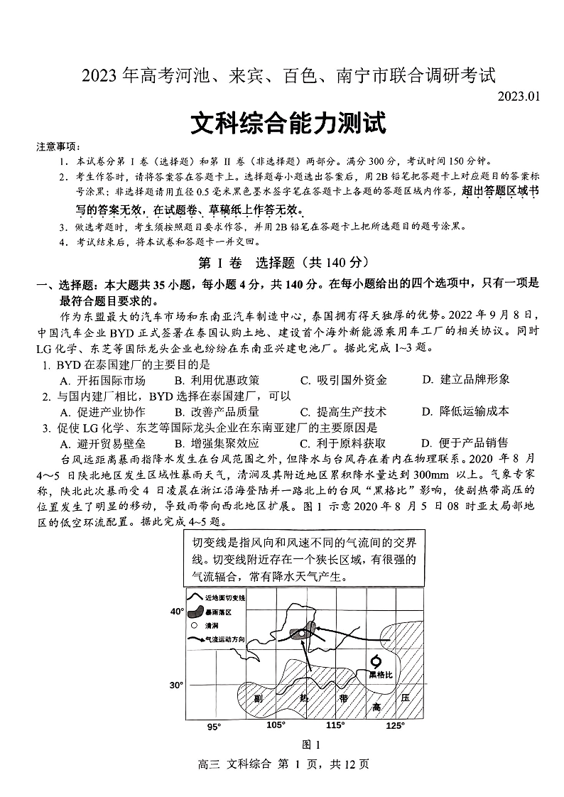 高三文综--广西桂林、崇左市2023年高考联合一模调研考试