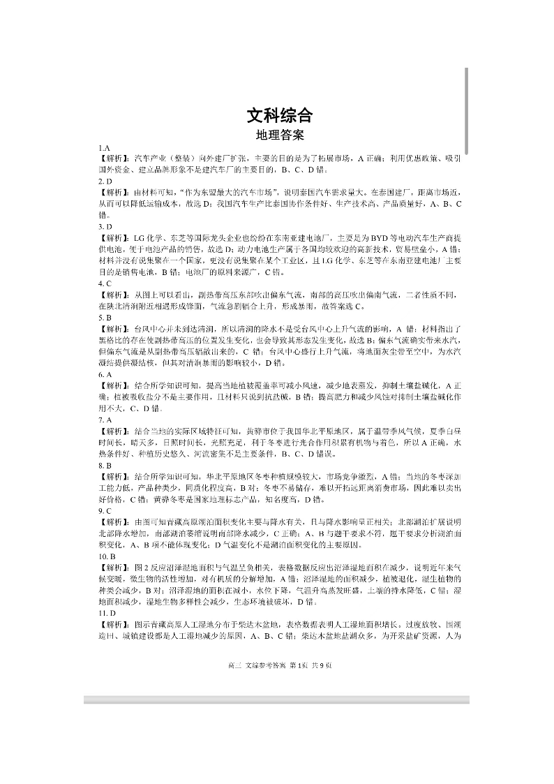 高三文综答案--广西桂林、崇左市2023年高考联合一模调研考试
